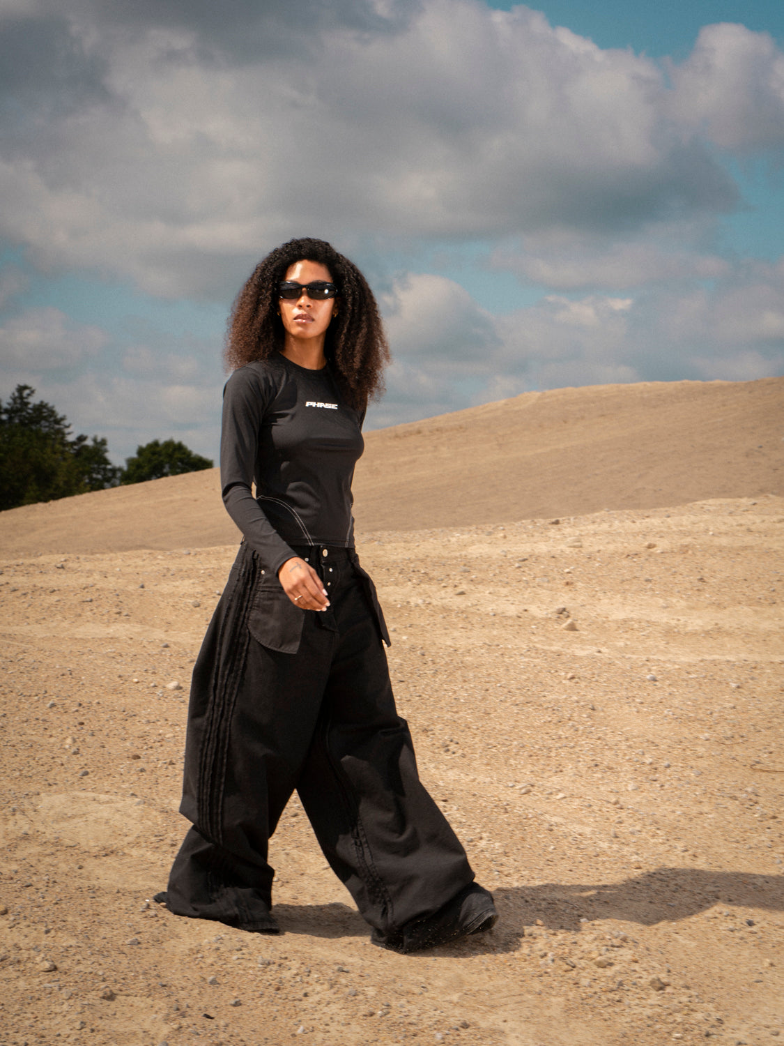 100% ribbed polyester long sleeve shirt with signature logo printed on the center chest. Signature label on waist hem. Unisex.